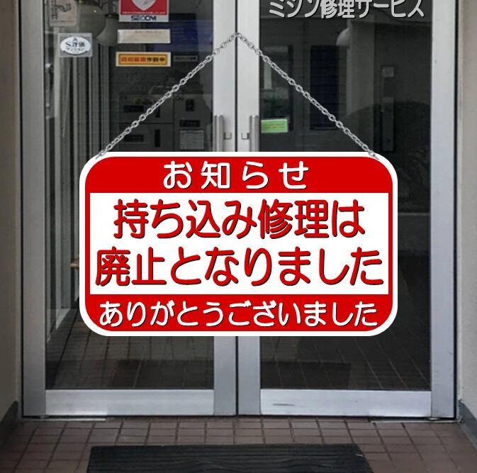 A: ミシン持ち込み修理は廃止となりました。